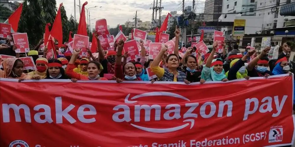亚马逊在孟加拉服装供应厂的工人进行抗议,图源:Business Insider