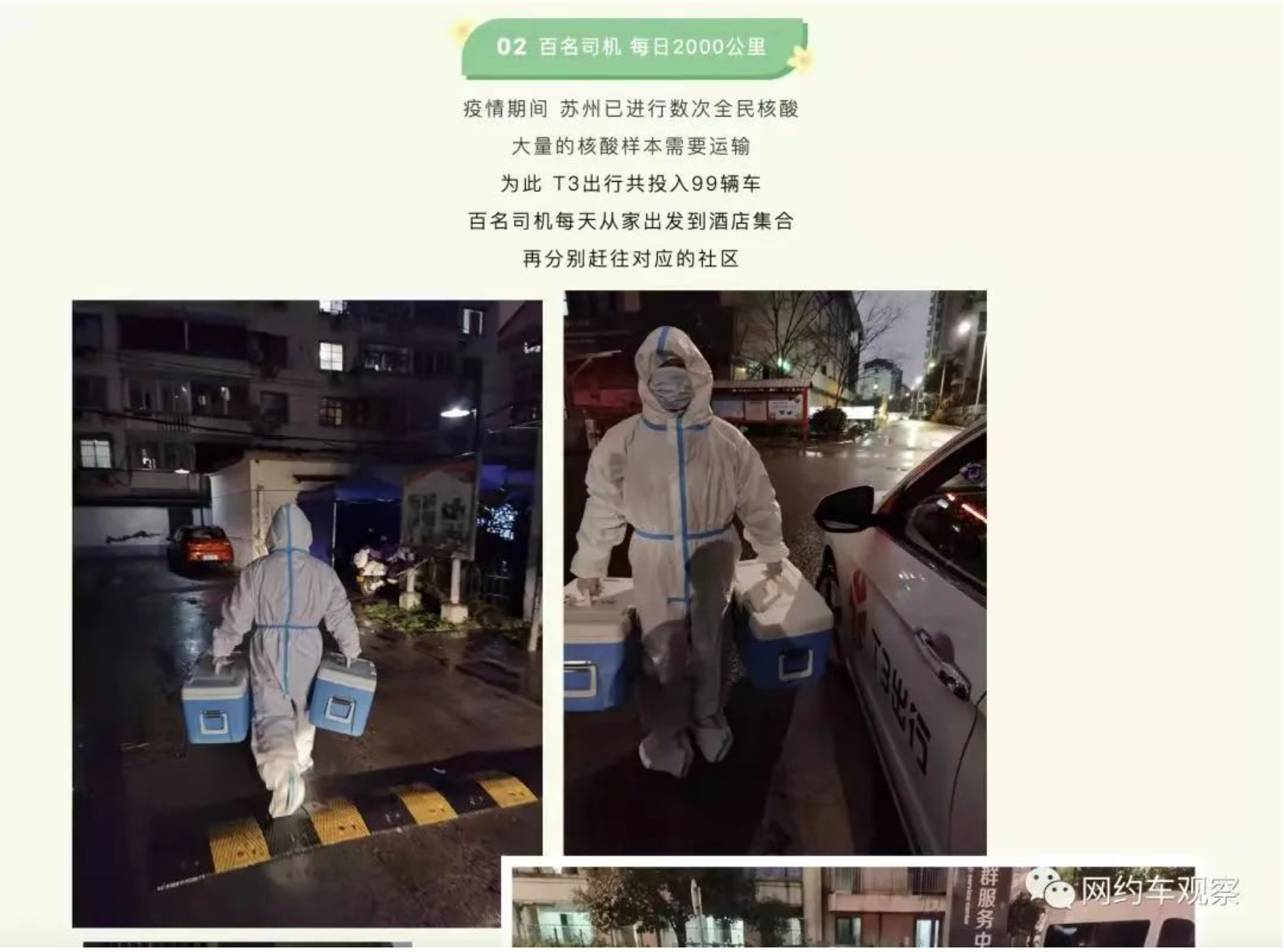 在本次苏州疫情期间,T3出行组织苏州市的T3司机组成志愿车队,运输核酸样本、医护人员,并在官方网站上大肆宣传,展示“企业社会责任”,博得口碑和名誉。平台依靠司机的默默付出给品牌贴金,但却对疫情下司机的困境不理不睬,虚伪面目暴露无遗。