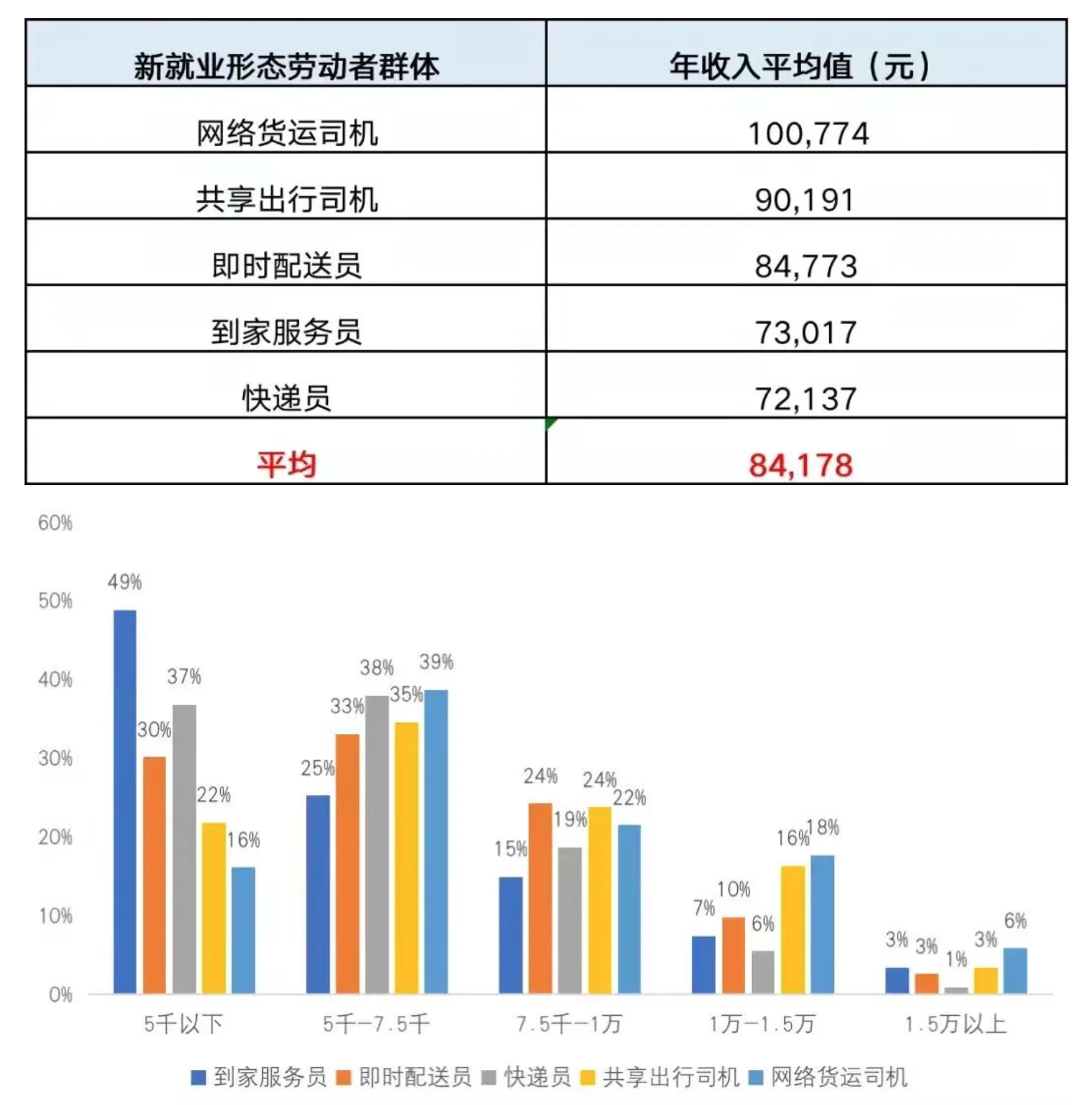 1月28日,华南理工大学工商管理学院-薪宝科技零工经济研究中心发布了《2021年新就业形态劳动者生存状况排行榜》,从收入、保障、工作强度、负债情况五个维度,对网络货运司机、网约车司机、即时配送员、到家服务员、快递员这五个主要的新业态零工职业进行调研。