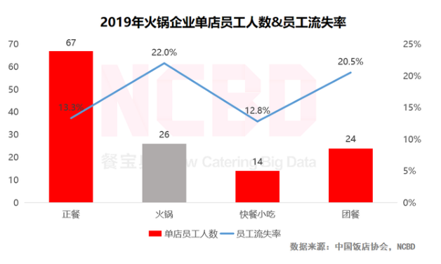 近日,NCBD(餐宝典)发布了《2020—2021中国火锅行业发展报告》,预计2020年中国火锅市场总收入将达到8880亿元。火锅行业与正餐、小吃快餐以及团餐等品类相比,火锅的毛利率与净利率较高,但火锅行业一线员工与管理人员平均工资最低,员工流失率最高,达到22%,远超其他品类。