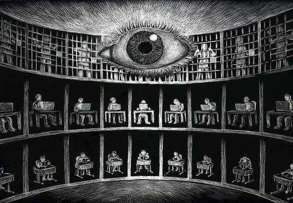 西方一些学者会将这种与新时代科技相结合的监控方式称为“电子化的圆形监狱(electronic panopticon)”。因为这与两百多年前边沁提出的“圆形监狱”的设计效果有异曲同工之处,即一个人站在圆形建筑的中心塔就可监视所有人,但被监视者无法确定自己是否正在被监视,只有时时保持警醒。这样的大型监视手段如今通过电子科技就可以轻易做到。