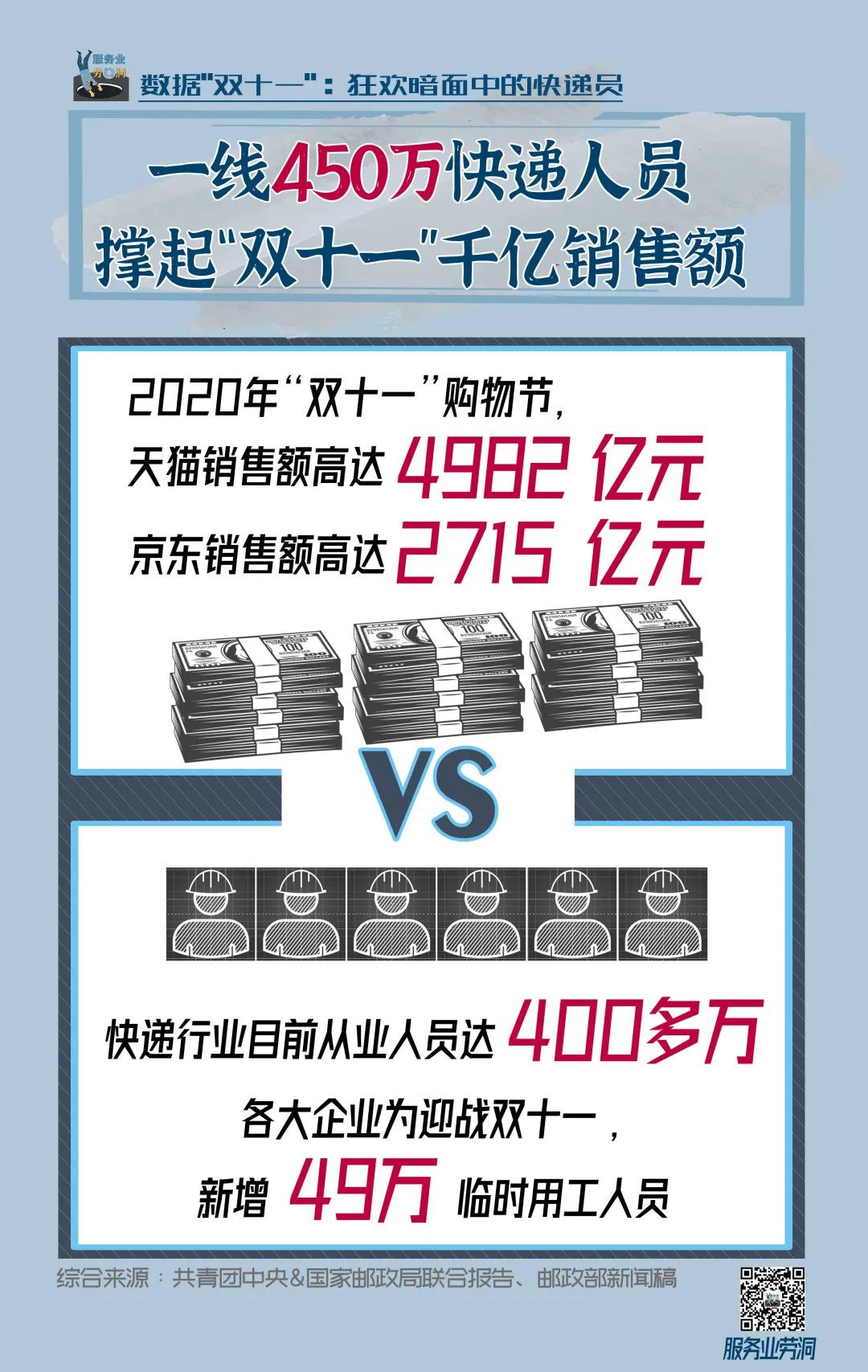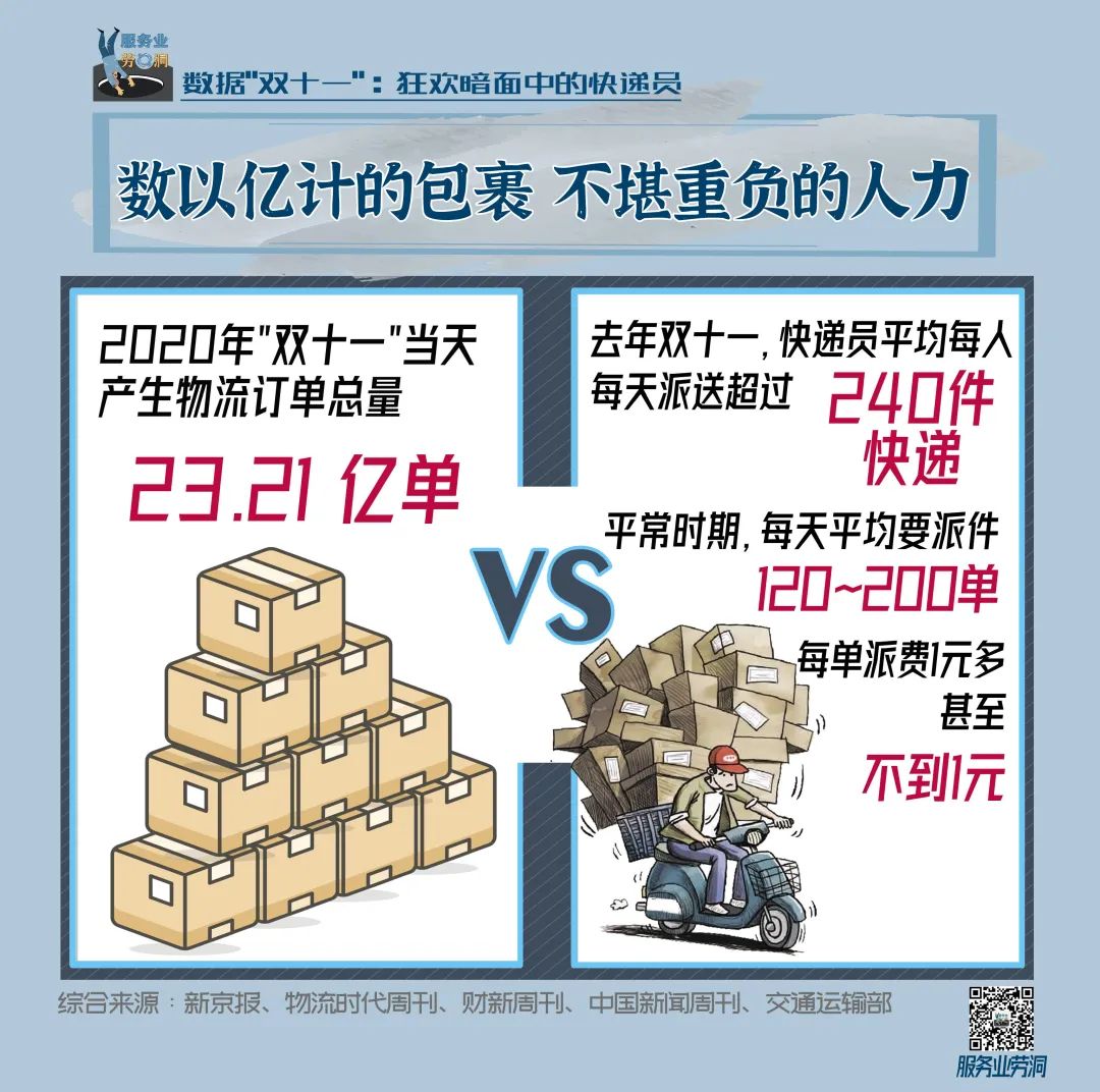 这是一个特别的“双十一”。去年底突如其来的新冠疫情打破了原本的社会常态,经济发展遭遇停滞,每个人的生活也遭遇挑战。后疫情时代,各大企业商家寄希望于“双十一”寻求突围,恢复活力;消费者也在筹划如何填满“报复性消费”的欲望,享受各种消费利好。然而,漫天“狂欢”、“嗨购”的气氛中,快递员的身影一直都被忽视。
