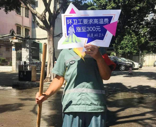 这些因素都迫使一线工人频频发出质疑,“一天6块9,买水都不够”,为何政府迟迟不做调整?2019年,广州有多区环卫工以集体联署建言和举牌的方式,呼吁相关人社部门尽快出台政策,修订标准。一众环卫工打出标语:“流的汗比发的王老吉还多”、“GDP广东第一,高温费全国垫底”,最后主张“环卫工要求高温费涨至300元”,并征集得到超过300名工人和公众的签名,其中多数为一线环卫工,后汇总为建议信提交给了省市级相关的人社部门和城管部门。