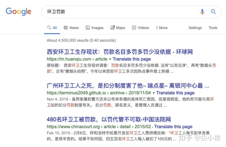 以罚代管几乎成为环卫行业通行的“潜规则”。谷歌搜索“环卫罚款”,有450万条结果,扣分罚款理由千奇百怪:西安环卫工坐一下被罚款50元;有工人因为烟头落地当天被扣400元,甚至站着说话聊天也被扣分。