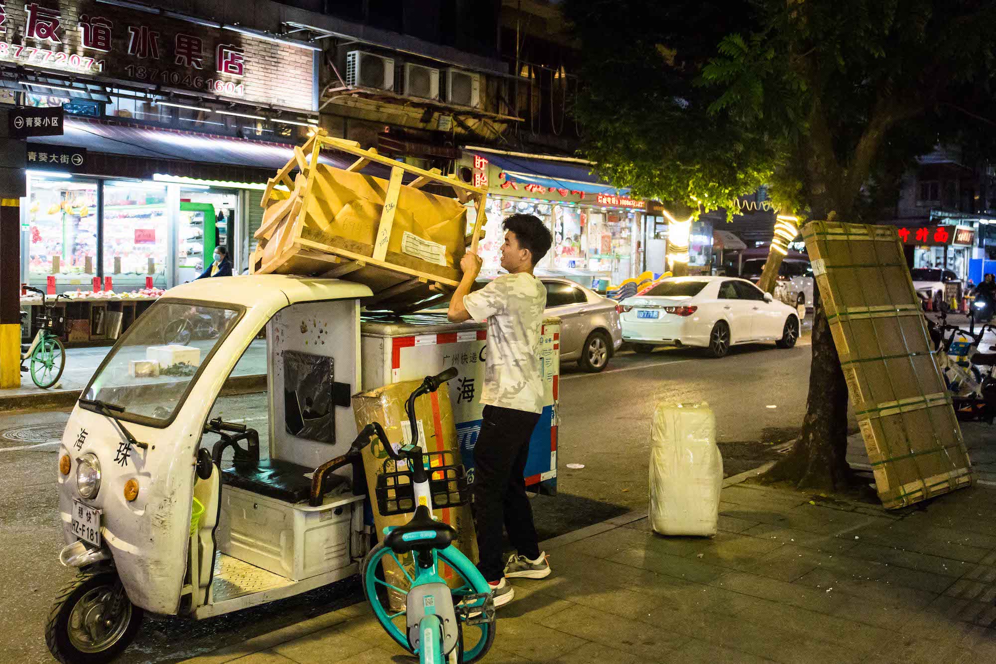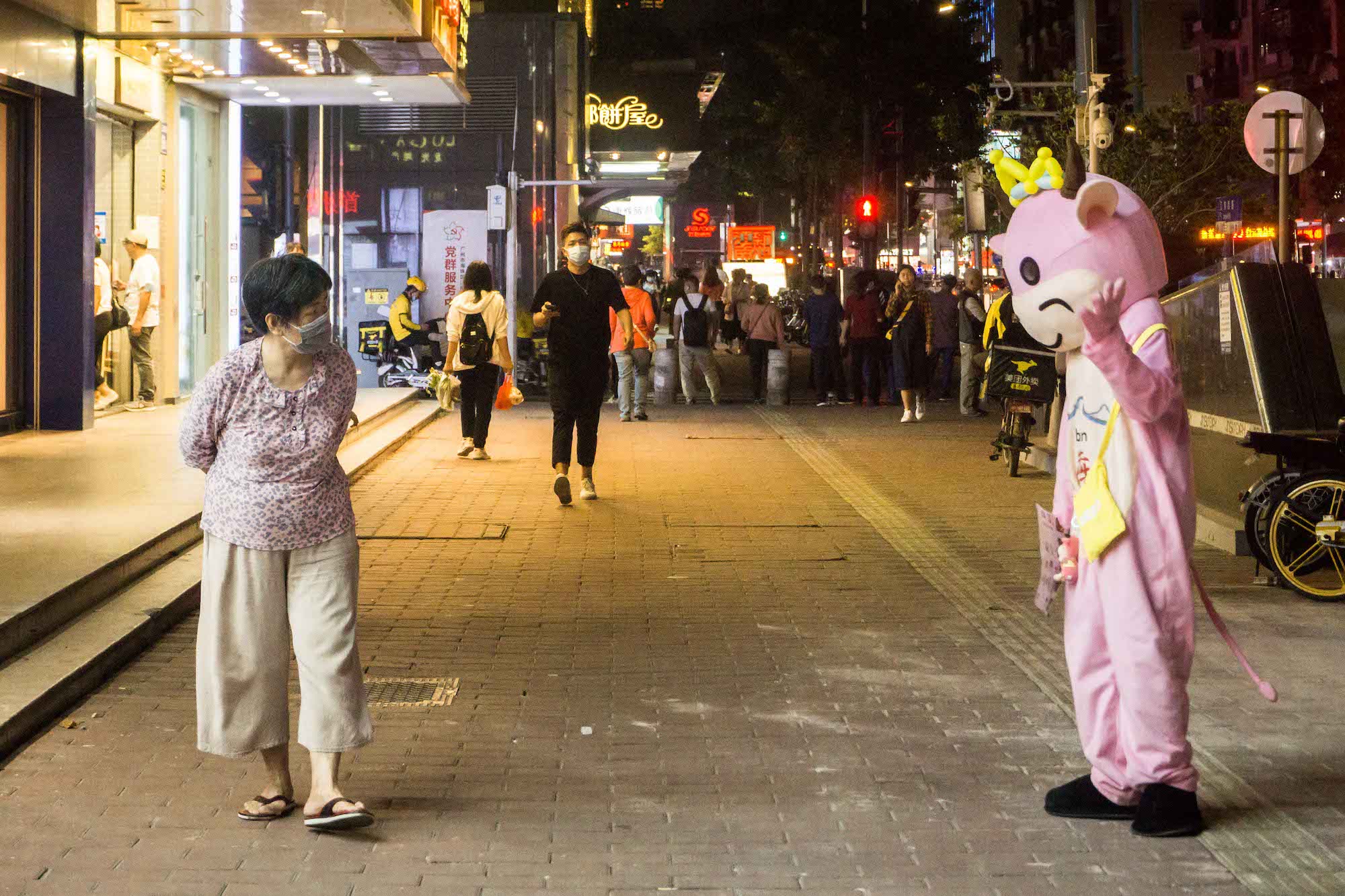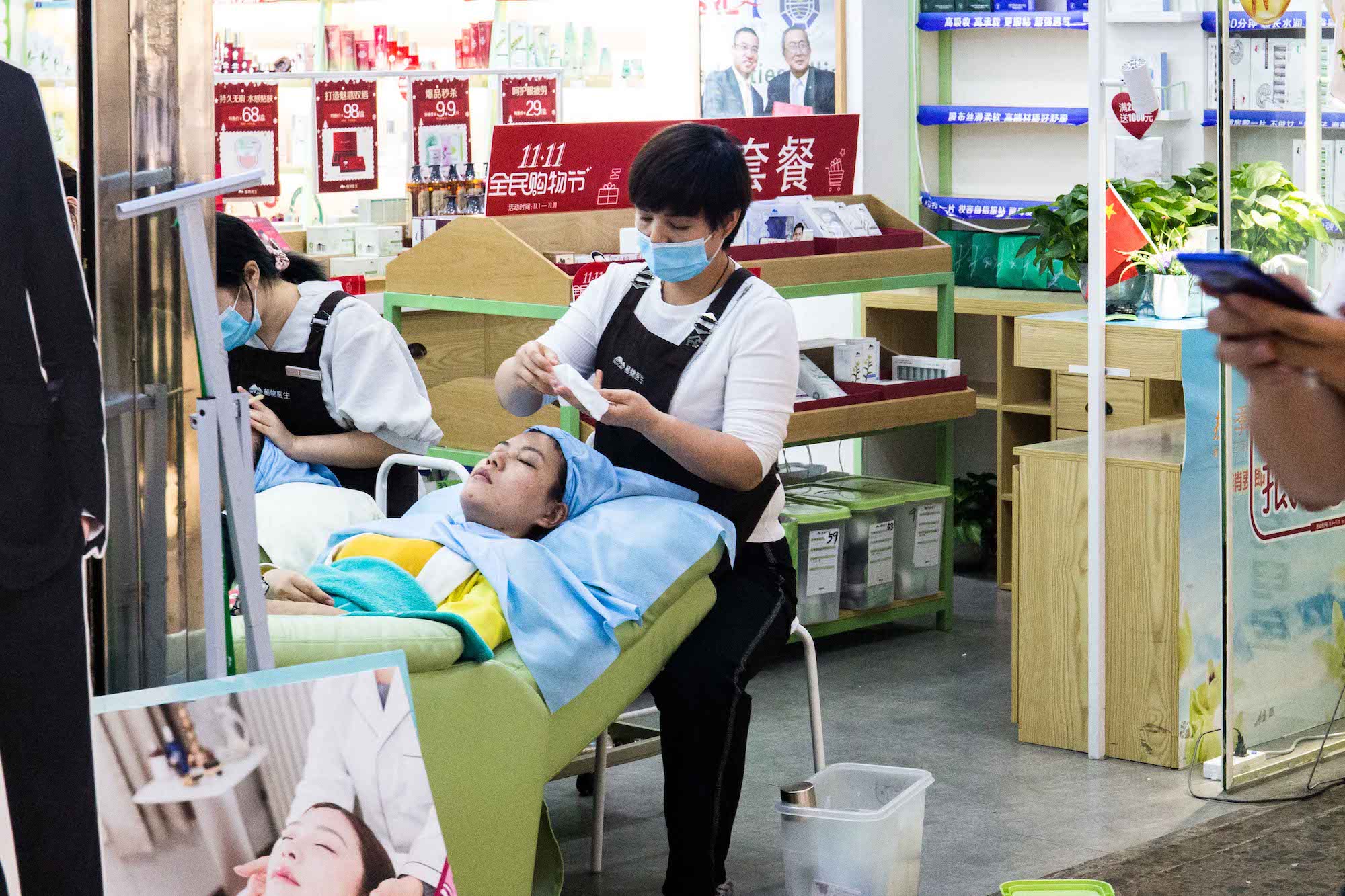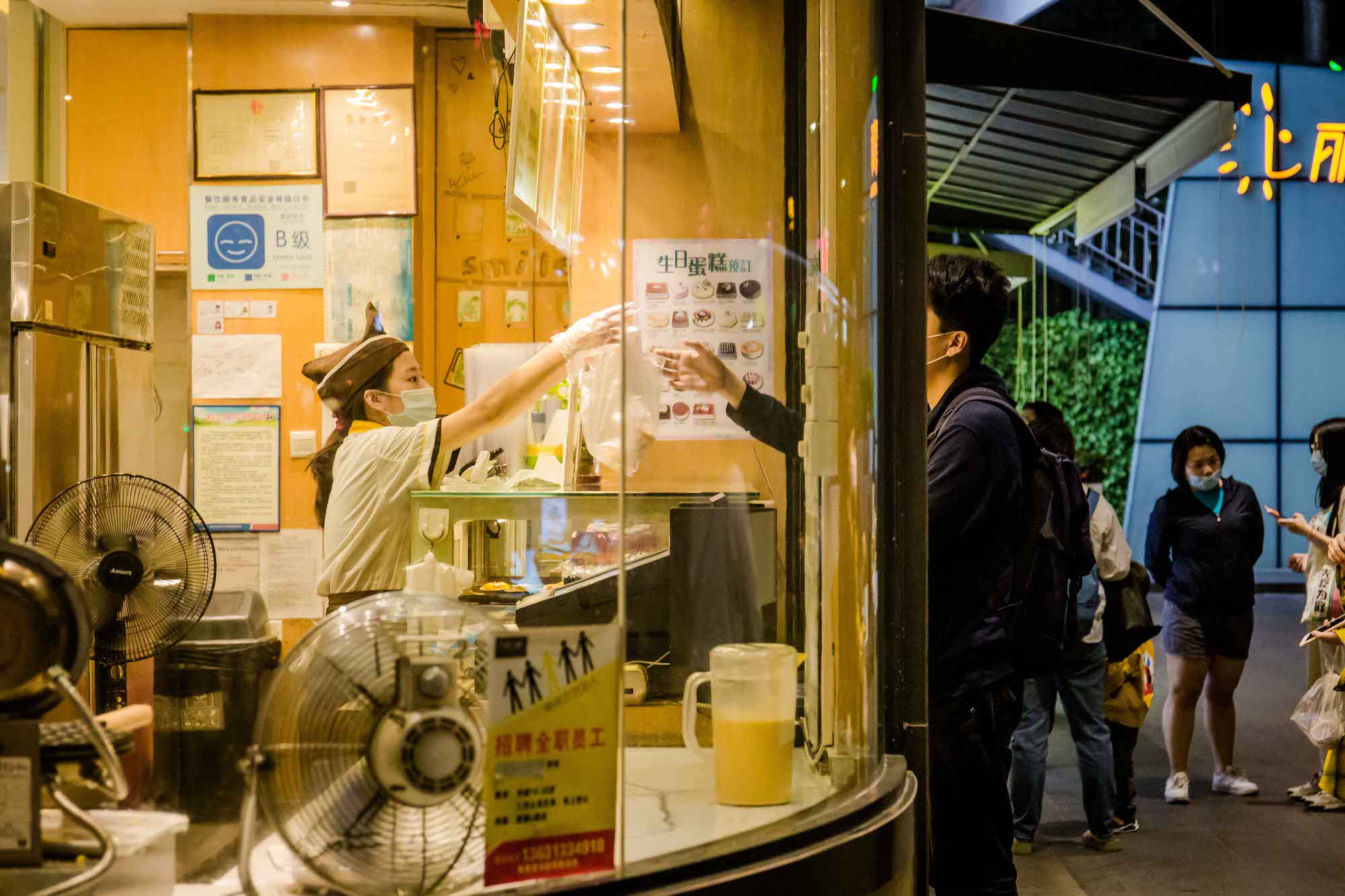 编辑推荐 劳动者的孤独——“双11”城市劳动者图集 劳洞 2020/11/16 1 “双11”本来是以“孤独”的名义被创造的节日,但聪明的商人将它打造成了一个消费节,鼓吹在这一天里,孤独的人和不孤独的人都应该犒赏自己,从买买买中得到快感。消费和劳动本来就是经济体系中的一体两面,有消费,就有关于消费的劳动——至2018年底,中国就已经有超3.6亿服务业从业者,ta们像银河里的繁星一样,散落在批发零售、交通运输、仓储物流、住宿餐饮等每一个与消费有关的节点中,为我们的“狂欢”行为而忙碌着。服务业劳动者总是孤独的。当夜幕徐徐落下,都市白领上班族们结束一天的工作正要投入放松享受时,ta们的忙碌才刚刚开始,通常持续到深夜。ta们也没有权利享受周末时光,而是要为他人的闲暇和娱乐付出劳动,而这种劳动通常被认为是不重要的、低技术含量的、可有可无的,自然也不会被记住。繁华都市熙熙攘攘的人群穿梭来往,服务业劳动者身影总有一种英雄主义的孤独感。“双11”这一天,劳洞以影像的方式,记录了这座城市中服务业劳动者的身影。 @2020.11.11 鲜花本身有各种美好的寓意,在消费主义盛行的今天,花还可以满足很多人的虚荣,但这一切对花店女孩来说可能只是每天需要机械重复的劳动,她们并不能拥有自己亲手制作的花。 花店女孩制作的花穗装饰,最终的归宿是各种现代性的消费场所。 服务业女性劳动者偏爱选择美容美体行业,但除了与美容技能相关的工作之外,她们经常要负担营销的任务——派发传单、卖套餐、招揽客户等等,这些工作都需要她们投入大量情绪情感,但换来的通常是拒绝和冷漠对待。 很多商圈的店铺和街边档口常常就像这样,只有一个人守在里面忙碌着。 夜幕降临,视线开始昏暗。晚高峰时公共汽车在拥挤不堪的马路上走走停停,司机的疲累程度达到顶峰。被照亮的不是美,而是劳动者脸上的倦容。 夜晚是属于消费的,但对于保洁阿姨和环卫工人而言,是垃圾生产的高峰。城市熙熙攘攘,她们在暗处默默处理消费过后的垃圾。正因为有她们,我们的城市才没有被垃圾围困。 基本的点餐上菜服务工作完成后,他们还需要守在自己负责的区域寸步不离,第一时间回应顾客的需求。打烊之后他们常常要打扫卫生至深夜。 厨房是闷热和有压力的,难得的舒压,是躲到外头,抽根烟、聊上两句。 后厨的环境常常是恶劣的——炉灶的高温闷热,满地的食材厨余、水渍油污;长时间的站立、集中精神和反复处理食材的动作都在威胁他们的身体健康。用餐高峰时,厨师几乎没有喘息休息的时间。 灯火辉煌的繁华商圈暗处,是孤独的代驾司机和他的小车在等待订单。 还有劳务派遣的保安员,他可能要维持这样的雕塑站姿,值班一整个通宵。 城市中穿梭不息的外卖员,难得停下来等一次红灯。 “双十一”真正的主角—— 消费狂欢暗处的快递员们 快剪店的师傅、背着小书包的妈妈,ta们都在为下一代“新劳动力”工作。 “有光”的柠檬茶店小妹,扛起双11的小店。 派送服务改变了整个零售业,超市外送区成了最忙碌的地方。算法中的外送员,在墙上的电子屏被实时显示,每一个订单的时限、骑手分配和订单状态都被算法设计和规定好。每位外送员走的时候都要取走五、六个订单,两手满满当当都是货物。 低成本,不是理所当然。低价、直达、回馈……商家不断打出响亮谦恭的服务承诺,靠的是数量庞大的一线工作人员在背后维持与兑现。 “有需要,请找我”,可当他/她们有需要时,可以找谁? 橱窗的背后,是商品,也是劳动者的背影。 超市售货员的身体也被用成了广告位。 “买燕塘牛奶,送气球啦”,外派到沃尔玛的牛奶导购员总需要通过不断吆喝、用气球吸引小朋友买牛奶。靠销量提成,是她们工资的全部。 外面是熙熙攘攘的购物人群,里面是专属于她的一方小小工作间,没有人停留选购的时候,她就专注地制作饭团。 烧腊背后的面孔是怎样?无人好奇。 玩偶装的工人,藏起了ta的喜怒哀乐,热情的与路人招手发传单。南方的秋夜仍然有点热感,不知道ta热不热?