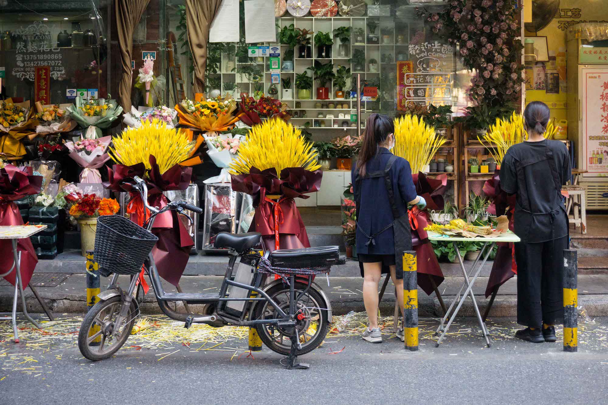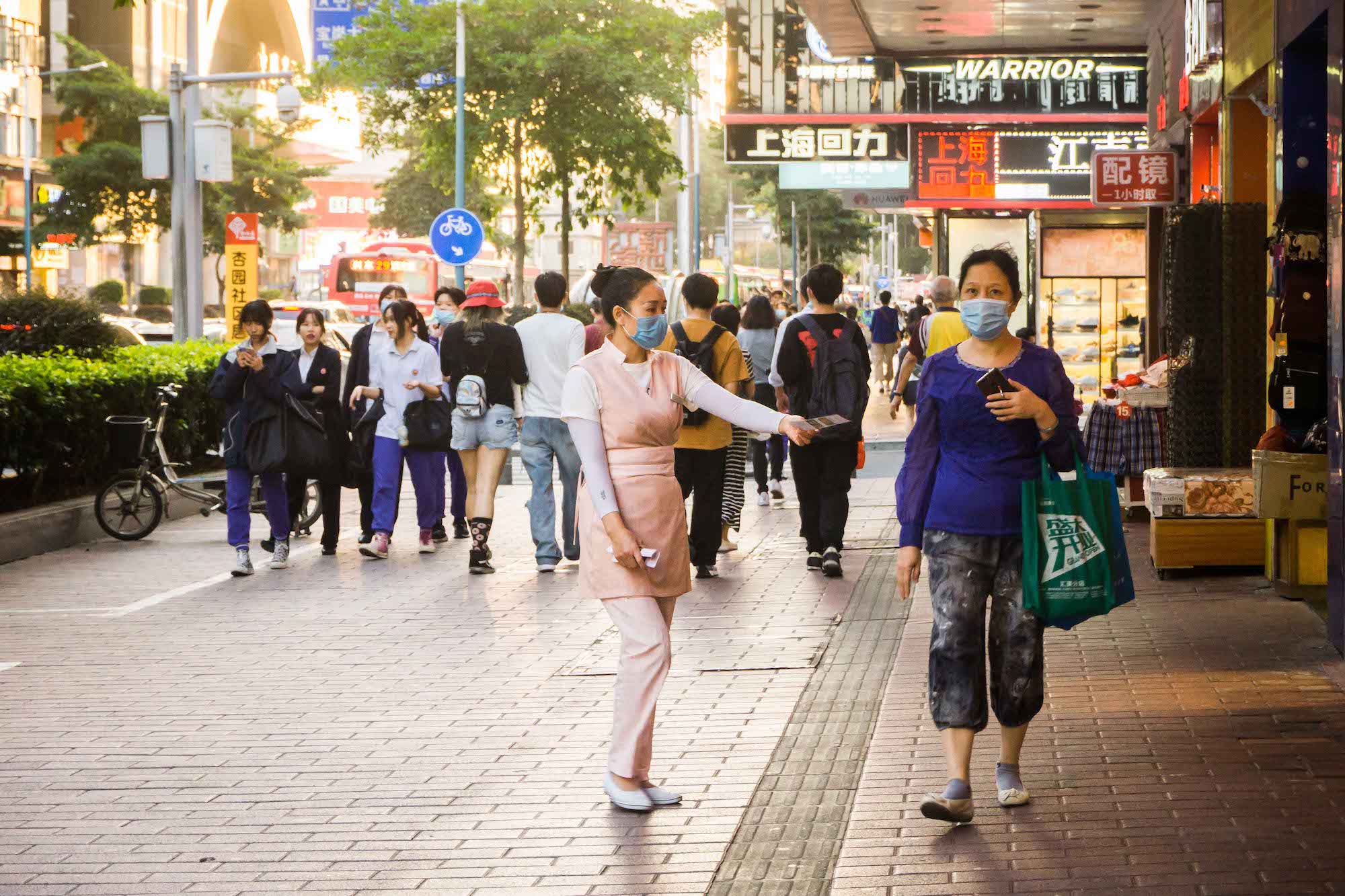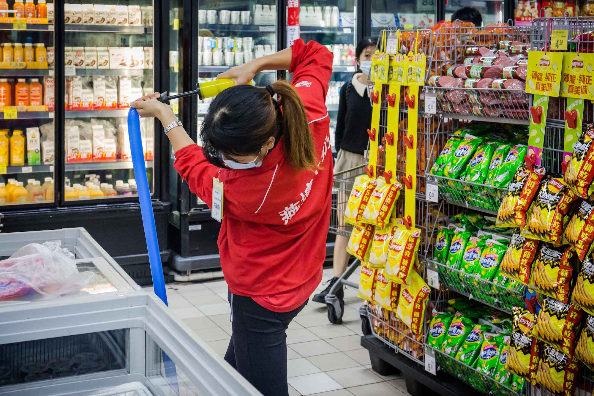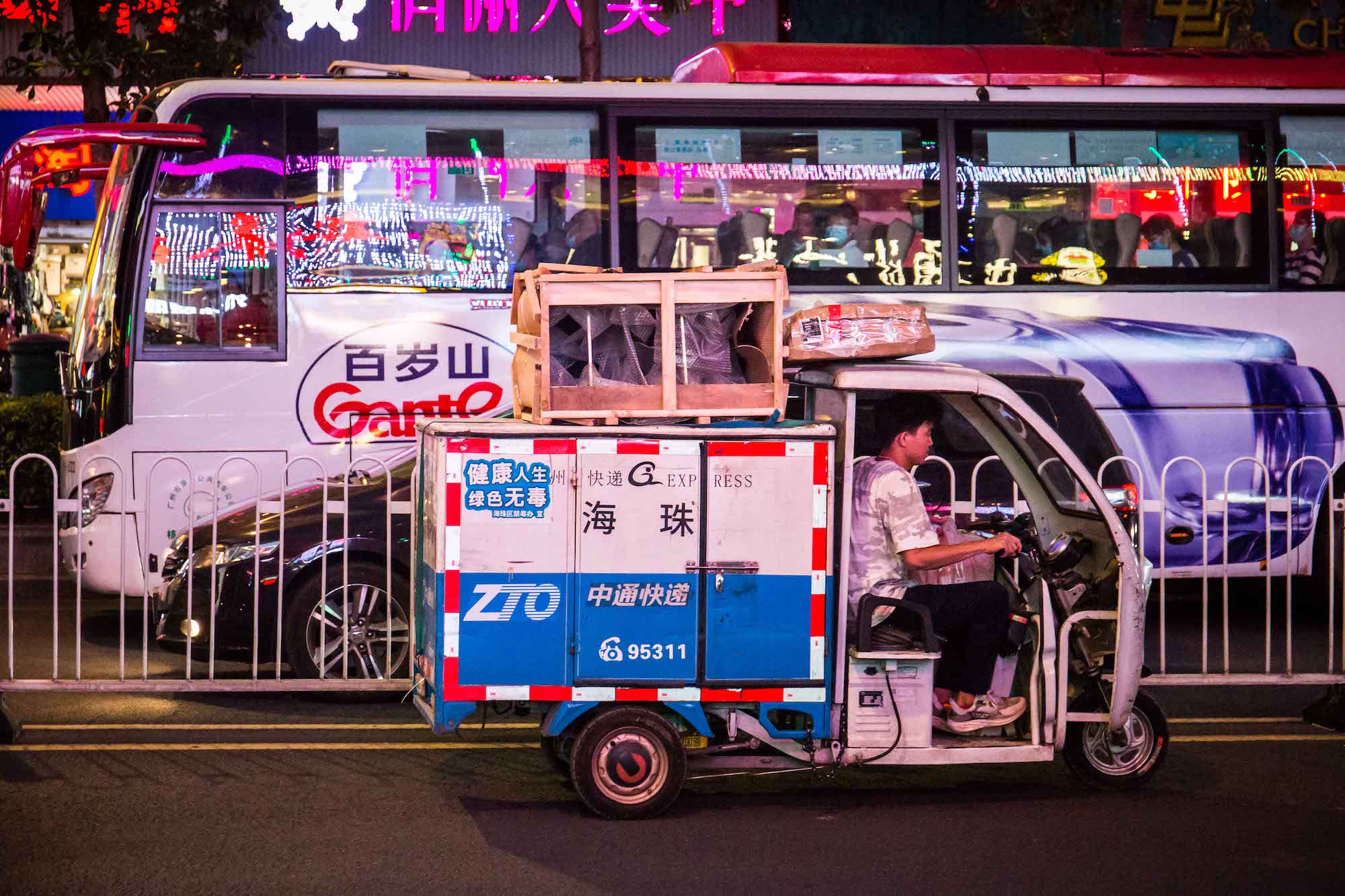 编辑推荐 劳动者的孤独——“双11”城市劳动者图集 劳洞 2020/11/16 1 “双11”本来是以“孤独”的名义被创造的节日,但聪明的商人将它打造成了一个消费节,鼓吹在这一天里,孤独的人和不孤独的人都应该犒赏自己,从买买买中得到快感。消费和劳动本来就是经济体系中的一体两面,有消费,就有关于消费的劳动——至2018年底,中国就已经有超3.6亿服务业从业者,ta们像银河里的繁星一样,散落在批发零售、交通运输、仓储物流、住宿餐饮等每一个与消费有关的节点中,为我们的“狂欢”行为而忙碌着。服务业劳动者总是孤独的。当夜幕徐徐落下,都市白领上班族们结束一天的工作正要投入放松享受时,ta们的忙碌才刚刚开始,通常持续到深夜。ta们也没有权利享受周末时光,而是要为他人的闲暇和娱乐付出劳动,而这种劳动通常被认为是不重要的、低技术含量的、可有可无的,自然也不会被记住。繁华都市熙熙攘攘的人群穿梭来往,服务业劳动者身影总有一种英雄主义的孤独感。“双11”这一天,劳洞以影像的方式,记录了这座城市中服务业劳动者的身影。 @2020.11.11 鲜花本身有各种美好的寓意,在消费主义盛行的今天,花还可以满足很多人的虚荣,但这一切对花店女孩来说可能只是每天需要机械重复的劳动,她们并不能拥有自己亲手制作的花。 花店女孩制作的花穗装饰,最终的归宿是各种现代性的消费场所。 服务业女性劳动者偏爱选择美容美体行业,但除了与美容技能相关的工作之外,她们经常要负担营销的任务——派发传单、卖套餐、招揽客户等等,这些工作都需要她们投入大量情绪情感,但换来的通常是拒绝和冷漠对待。 很多商圈的店铺和街边档口常常就像这样,只有一个人守在里面忙碌着。 夜幕降临,视线开始昏暗。晚高峰时公共汽车在拥挤不堪的马路上走走停停,司机的疲累程度达到顶峰。被照亮的不是美,而是劳动者脸上的倦容。 夜晚是属于消费的,但对于保洁阿姨和环卫工人而言,是垃圾生产的高峰。城市熙熙攘攘,她们在暗处默默处理消费过后的垃圾。正因为有她们,我们的城市才没有被垃圾围困。 基本的点餐上菜服务工作完成后,他们还需要守在自己负责的区域寸步不离,第一时间回应顾客的需求。打烊之后他们常常要打扫卫生至深夜。 厨房是闷热和有压力的,难得的舒压,是躲到外头,抽根烟、聊上两句。 后厨的环境常常是恶劣的——炉灶的高温闷热,满地的食材厨余、水渍油污;长时间的站立、集中精神和反复处理食材的动作都在威胁他们的身体健康。用餐高峰时,厨师几乎没有喘息休息的时间。 灯火辉煌的繁华商圈暗处,是孤独的代驾司机和他的小车在等待订单。 还有劳务派遣的保安员,他可能要维持这样的雕塑站姿,值班一整个通宵。 城市中穿梭不息的外卖员,难得停下来等一次红灯。 “双十一”真正的主角—— 消费狂欢暗处的快递员们 快剪店的师傅、背着小书包的妈妈,ta们都在为下一代“新劳动力”工作。 “有光”的柠檬茶店小妹,扛起双11的小店。 派送服务改变了整个零售业,超市外送区成了最忙碌的地方。算法中的外送员,在墙上的电子屏被实时显示,每一个订单的时限、骑手分配和订单状态都被算法设计和规定好。每位外送员走的时候都要取走五、六个订单,两手满满当当都是货物。 低成本,不是理所当然。低价、直达、回馈……商家不断打出响亮谦恭的服务承诺,靠的是数量庞大的一线工作人员在背后维持与兑现。 “有需要,请找我”,可当他/她们有需要时,可以找谁? 橱窗的背后,是商品,也是劳动者的背影。 超市售货员的身体也被用成了广告位。 “买燕塘牛奶,送气球啦”,外派到沃尔玛的牛奶导购员总需要通过不断吆喝、用气球吸引小朋友买牛奶。靠销量提成,是她们工资的全部。 外面是熙熙攘攘的购物人群,里面是专属于她的一方小小工作间,没有人停留选购的时候,她就专注地制作饭团。 烧腊背后的面孔是怎样?无人好奇。 玩偶装的工人,藏起了ta的喜怒哀乐,热情的与路人招手发传单。南方的秋夜仍然有点热感,不知道ta热不热?